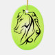 Ornement ovale avec la tête de cheval à l'encre noire, arrière - plan vert de gradient, symbole de caractère chinois pour le cheval sur l'inverse. C'est un grand cadeau pendant l'année chinoise du cheval (31 janvier 2014 - 18 février 2015), pour les personnes qui étaient nées pendant une année de cheval, ou pour des amants de cheval partout. Le cheval symbolise l'action, la liberté, le progrès, l'aventure et le romance. Spirituellement, le cheval est chanceux pour beaucoup de personnes comprenant des affaires et des ventes les gens, les artistes et les interprètes, les athlètes, les ingénieurs, les voyageurs et les gens avec qui travaillez ou près de la terre. 2014 est l'année du cheval (vert) en bois de Yang.