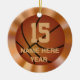 Le basket-ball personnalisé ornemente le NOM de joueurs de basket, le nombre du Jersey et l'ANNÉE. Voir les INSTRUCTIONS ci-dessous. Saisissez juste leur nombre, nom et année préférés du Jersey, sur l'AVANT et le DOS de cet ornement unique de basket-ball. Conception originale de petite Linda Pinda. Le basket-ball vintage se tient sur le fond métallique de cuivre.