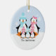 Des ornements de Noël personnalisables avec une adorable famille de cinq pingouins.