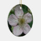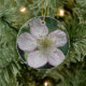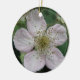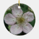 Ce joli ornement de style pendentif présente une photo d'une fleur de mûre blanche. La photo a été prise en utilisant la macro photographie pour un résultat détaillé. On y voit les détails fins comme la teinte rose sur les pétales blancs.