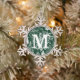 Concevez vos propres ornements faits sur commande de flocon de neige d'étain de monogramme en ajoutant votre propre initiale de monogramme à cet arrière - plan de motif gribouillé par vert d'arbre de Noël. Ceux-ci font de grands cadeaux personnalisés.