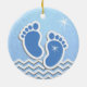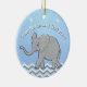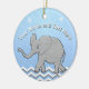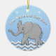 Ornements personnalisés de Noël d'éléphant de bébé. Saisissez VOTRE TEXTE ou le supprimez. Ornements mignons d'éléphant de bébé pour des bébés. APPELEZ le concepteur Linda pour changer l'arrière - plan et le chevron bleus d'ornement en rose ou d'autres couleurs. APPELEZ le concepteur Linda à : 239-949-9090