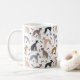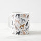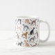 Les mignons chiens italiens Greyhound s'assoient et se tiennent avec des manteaux gris, faun, noir, rouge faun et bleu avec des os de chien éparpillés et des motifs de pawprints.