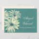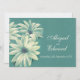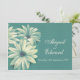 Belle peinture d'art osteopermum calenduleae faire-part de mariage. Faire-part de mariage simple et romantique, dans les tons vert et ivoire. Mariage classique partie design de la marguerite romantique mariage fixe. Modifiez cette invitation avec vos noms, dates et libellé. Uniquement peint en gouache sur papier sombre par l'artiste et designer Sarah Trett.