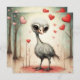 Un adorable petit autruche et des coeurs.