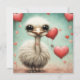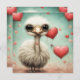 Un adorable petit autruche et des coeurs.