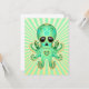 Ce motif unique de poulpe est décoré de motifs tourbillonnants dans le style des crânes de sucre du Jour des Morts. Le design symétrique bulle a des couleurs vert clair et jaune qui lui donnent un aspect de dessin animé. Un petit coeur est visible juste en dessous de la bouche cousue avec une étoile cinq points apparaissant juste au-dessus des grands yeux. Les huit jambes du bébé Octopi s'accrochent sous la tête et se recroquent pour lui donner une apparence ludique. De petites pédales de fleurs entourent les yeux noirs dans la tradition du Jour des Morts. Ce design mignon est une représentation unique de cette merveilleuse petite créature marine.