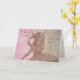 D'une grande beauté romantique, cette photographie représente la sculpture « Psyché ranimée par le baiser de l'Amour » d'Antonio Canova, 1793. La déesse Vénus ordonna à Psyché de rapporter des Enfers un flacon contenant un fragment de beauté, mais il lui était strictement interdit de l'ouvrir. La curiosité l'emporta cependant. Il n'avait pas été rempli de beauté, mais plutôt du « Sommeil des Ténèbres intérieures, la nuit du Styx », et aussitôt qu'elle ouvrit le pot, elle respira les terribles vapeurs et tomba dans un profond sommeil semblable à la mort. La voyant allongée sans mouvement, Cupidon se précipita à ses côtés et la sauva en la réveillant avec la pointe de sa flèche. La sculpture capture le moment où elle se réveille, juste avant qu'ils ne partagent un baiser. La photographie est rehaussée de douces nuances de rose et d'or et de fantaisistes points de lumière en forme de cœur. La citation, en gris foncé, dit « Je sais exactement où est mon cœur ». Le haut de l'intérieur de la carte présente le poème « Comment je t