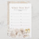 (Choisissez la finition papier MATT - PAS semi-brillant - à écrire.) Ajoutez une activité amusante et mémorable à votre douche nuptiale avec le jeu "Où étions-nous ?", où les invités devinent l'emplacement des photos montrant la mariée et le marié. Ce jeu, orné de délicats flancs d'aquarelle et d'élégantes perles, apporte le rire et la joie à votre célébration, complétant parfaitement la collection Elegant Pearls and Prosecco Fête des mariées Collection.