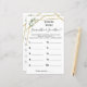 Où étaient-ils ? Jeux en version anglaise et espagnole inclus (avant et arrière). Ajoutez Bride & Groom pour être Nom dans le modèle pour les versions anglaise et espagnole. Pour plus de personnalisation (modifier le libellé, ajouter ou supprimer le nombre de photos, la couleur de police, le style de police ), cliquez sur personnaliser, faites défiler et cliquez sur le lien "cliquer pour customiser plus loin". COMMENT JOUER : Affichez les photos de la mariée et de la mariée à différents endroits, et numérotez-les. Les clients notent leur devinette sur chaque photo et la personne qui a les réponses les plus correctes gagne !