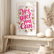 Renforcez et inspirez avec cette vibrante impression d'art "Oui Fille Tu Peux". Caractérisée par une typographie audacieuse et manuscrite dans des teintes roses et dorées stimulantes, accentuée de cœurs et d'étoiles ludiques, cette pièce est un cri de ralliement pour la confiance et la foi en soi. Parfait pour ajouter une touche de pouvoir féminin et de motivation à n'importe quel espace.