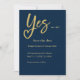 Oui We Do navy blue Gold mariage save the date card Cet élégant design mariage bleu marine et or comporte l'expression "Yes we do!" avec le mot "Yes" écrit dans un script doré romantique — le Y balayant habilement incorpore une forme de coeur, symbolisant l'amour et l'unité. Le design minimaliste et chic associe une typographie moderne audacieuse à des accents dorés intemporels, créant un look luxueux, parfait pour des événements formels, des célébrations de cravate bleu marine ou des mariages du soir. Les noms sont affichés en calligraphie gracieuse, ajoutant une touche de charme personnel à cette papeterie sophistiquée. Cette conception fait partie d'une collection de mariages personnalisables et a été pensée avec l'aide de l'IA pour soutenir la créativité. Je peux gagner une petite commission grâce à des achats effectués via des liens de référence sur les médias sociaux.