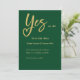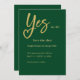 Oui Nous faisons mariage vert émeraude Or enregistrer la carte de date Cet élégant design mariage vert émeraude et or comporte l'expression "Oui, nous le faisons !" avec le mot "Oui" écrit dans un script doré romantique — le Y balayant incorpore astucieusement une forme de coeur, symbolisant l'amour et l'unité. Le design minimaliste et chic associe une typographie moderne audacieuse à des accents dorés intemporels, créant un look luxueux, parfait pour des événements formels, des fêtes de cravate vert émeraude ou des mariages de soirée. Les noms sont affichés en calligraphie gracieuse, ajoutant une touche de charme personnel à cette papeterie sophistiquée. Cette conception fait partie d'une collection de mariages personnalisables et a été pensée avec l'aide de l'IA pour soutenir la créativité. Je peux gagner une petite commission grâce à des achats effectués via des liens de référence sur les médias sociaux.