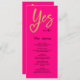 Oui Nous faisons Hot Pink Gold Mariage menu et programme tout en une carte Cette élégante conception mariage rose chaud et or comprend la phrase "Oui, nous le faisons !" avec le mot "Oui" écrit dans un script doré romantique — le Y balayant incorpore astucieusement une forme de coeur, symbolisant l'amour et l'unité. Le design minimaliste et chic associe une typographie moderne audacieuse à des accents dorés intemporels, créant un look luxueux parfait pour des événements formels, des fêtes de cravate noire ou des mariages de soirée dynamiques. Les noms sont affichés en calligraphie gracieuse, ajoutant une touche de charme personnel à ce design sophistiqué. Cette conception fait partie d'une collection de mariages personnalisables et a été pensée avec l'aide de l'IA pour soutenir la créativité. Je peux gagner une petite commission grâce à des achats effectués via des liens de référence sur les médias sociaux.