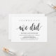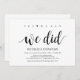 Oui, nous pouvons, nous avons fait, , cartes d'invitation pour la réception de mariage en fuite. Cette carte d'invitation de mariage rustique kraft est parfaite pour votre réception de mariage et votre fête de célébration post-mariage. Ajoutez vos détails dans une police / lettrage noir assorti.