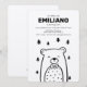 Le design minimaliste comprend un ours dans une cravate à arc dans la forêt. Customisez ces invitations pour tout événement. Imprimé sur papier kraft brun lisse. ©2021 Copyright, Dio Perez