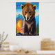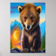 Un ours brun dans la forêt avec montagne et forêt dans l'arrière - plan. C'est un art généré par l'IA.