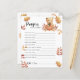 Célébrez avec cette soirée baby shower à thème d'ours en peluche! Aquarelle mignon ours en peluche avec un citrouille d'automne dans ses pattes est assis sur le feuillage d'automne. Au verso de la carte se trouvent les feuilles d'automne.