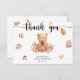 "Merci" Célébrez avec cette soirée baby shower à thème ours en peluche ! Aquarelle mignon ours en peluche avec un citrouille d'automne dans ses pattes est assis sur le feuillage d'automne.