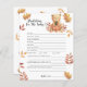 Célébrez avec cette soirée baby shower à thème d'ours en peluche! Aquarelle mignon ours en peluche avec un citrouille d'automne dans ses pattes est assis sur le feuillage d'automne. Au verso de la carte se trouvent les feuilles d'automne. Éléments correspondants disponibles.