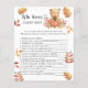 Célébrez avec cette soirée baby shower à thème d'ours en peluche! Aquarelle mignon ours en peluche avec un citrouille d'automne dans ses pattes est assis sur le feuillage d'automne. Au verso de la carte se trouvent les feuilles d'automne. Éléments correspondants disponibles.