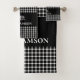 Profitez de ce plaid rustique, blanc et noir avec modèle monogramme pour le rendre personnalisé avec une silhouette d'ours faite dans le même plaid.