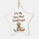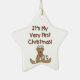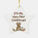Un adorable ornement de Noël pour bébé avec un ours en peluche avec des bois de rennes et un texte rayé sucre de canne et sucre de canne qui dit "C'est mon tout premier Noël".