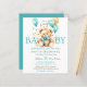 Joli ours en peluche avec un nœud à peine attendre bleu aqua or marron avec ballons paillettes dorées baby shower modèle d'invitation de budget
