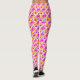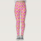Un ours en peluche amusant fait face à des leggings à motifs rose, jaune, blanc et violet © Design motif original par Sarah Trett. www.sarahtrett.com pour www.mylittleeden.com sur zazzle.