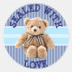 Baby shower, Anniversaire ou Faire-part de naissance Ours en peluche "scellé avec amour" Sticker bleu et bronzé.