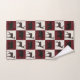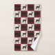 Cette courtepointe est décorée dans un style cabine rustique et charmant. Il dispose d'un motif de damier ludique alternant des carrés rouge foncé et crème. Chaque carré abrite une silhouette d'un cerf ou d'un ours, créant une scène boisée capricieuse. Les animaux sont représentés dans une silhouette simple mais élégante, ajoutant à l'ensemble de l'esthétique rustique. La palette de couleurs rouge foncé et crème évoque un sentiment de nature et crée une atmosphère chaleureuse et accueillante.
