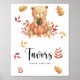 Célébrez avec cette soirée baby shower à thème ours en peluche ! Aquarelle mignon ours en peluche avec un citrouille d'automne dans ses pattes est assis sur le feuillage d'automne. Éléments correspondants disponibles.