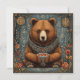 L'ours majestueux assis calmement, orné d'un collier magnifiquement détaillé. Il contient un bol rempli de baies rouges, entouré de décorations florales et de divers symboles dans l'arrière - plan. L'oeuvre combine des éléments de la nature avec des symboles mystiques, créant une atmosphère séduisante et sereine.