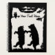 Ce planificateur est noir et blanc avec une silhouette de deux ours dansant dans l'herbe entourés d'arbres sous des nuages blancs avec une chouette dans l'arbre au-dessus d'eux. Customisez votre texte sur le devant avec le modèle.