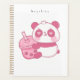 Un panda rose kawaii très mignon qui tient un verre.