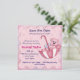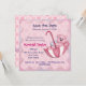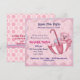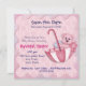 Invitation de shower de bébé fille douce avec un ours en peluche rose adorable chevauchant un parapluie, gros points et autres touches spéciales. Personnalisez avec vos informations.