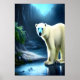 Un ours polaire debout dans une flaque d'eau dans une petite oasis. C'est un art généré par l'IA.