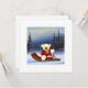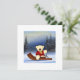 Pour les fêtes de fin d’année, un mignon petit ourson sur une luge dans un paysage de montagne enneigé.