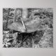 Magnifique vieille brouette rouillée, râteau et échelle dans un imprimé d'affiche noir et blanc du jardin. Photo nature par Susan.