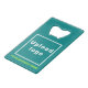 Ouvrez-bouteille rectangle que vous pouvez customiser pour mettre votre nom d'entreprise et logo pour construire la sensibilisation de marque. Vous pouvez l'inclure dans vos produits promotionnels, cadeaux ou cadeaux offerts à vos clients, une stratégie de marketing pour annoncer votre entreprise ou promouvoir votre marque. Les couleurs de design sont des textes jaune-vert sur arrière - plan vert turquoise. Veuillez vérifier l'apparence sur les côtés avant et arrière après avoir téléchargé votre logo d'entreprise et tapé votre nom d'entreprise. Si l'apparence vous plaît, vous pouvez passer votre commande maintenant. Si vous devez redimensionner et déplacer votre nom d'entreprise et votre logo pour qu'il s'insère sur cet ouvre-bouteille, veuillez modifier l'outil de conception. Vous pouvez également modifier la couleur de police, le style de police et la couleur arrière - plan dans l'outil de conception.
