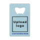 Ouvrez-bouteille rectangle que vous pouvez customiser pour mettre votre nom d'entreprise et logo pour construire la sensibilisation de marque. Vous pouvez l'inclure dans vos produits promotionnels, cadeaux ou cadeaux offerts à vos clients, une stratégie de marketing pour annoncer votre entreprise ou promouvoir votre marque. Les couleurs design sont des textes bleu foncé sur arrière - plan bleu clair. Veuillez vérifier l'apparence sur les côtés avant et arrière après avoir téléchargé votre logo d'entreprise et tapé votre nom d'entreprise. Si l'apparence vous plaît, vous pouvez passer votre commande maintenant. Si vous devez redimensionner et déplacer votre nom d'entreprise et votre logo pour qu'il s'insère sur cet ouvre-bouteille, veuillez modifier l'outil de conception. Vous pouvez également modifier la couleur de police, le style de police et la couleur arrière - plan dans l'outil de conception.