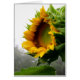 Le tournesol commence à s'ouvrir un matin brumeux dans notre jardin du New Hampshire.