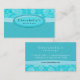 Le carte de visite de salon pour l'ongle ou le salon de coiffure ou le spa avec le motif assez floral/fleur en damassé bleue élégante et à la mode et les rayures avec le nom de la société ovale bouillonnent.