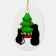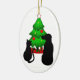 Ovale En Céramique Animaux de Noël Chien et Chat Ornement