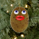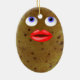 Funny Potato joli caractère féminin avec de grandes lèvres et les yeux bleus double face de céramique ovale ornement de Noël