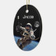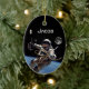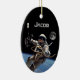 Personnalisez cette photo spectaculaire d'un astronaute effectuant une marche spatiale en orbite au-dessus de la Terre, avec une pleine lune dans l'obscurité de l'espace. Il suffit de substituer le nom de votre futur astronaute préféré à celui indiqué. L'arrière de cet ornement très spécial a une photo de la pleine lune.