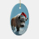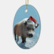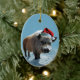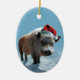 Un souvenir en céramique de vacances comportant le juge dans un casquette de Père Noël.