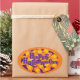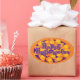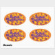 Autocollant de forme ovale illustré dans une impression de maïs bonbon Halloween orange et violet. Customisez cet objet ou achetez tel quel.