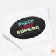 Notre Sticker ovale pour soins infirmiers Mod Peace Love est l'idée cadeau parfaite pour la Journée des infirmières ou toute occasion! Le design présente du texte en bleu, rouge, blanc et gris contre un arrière - plan foncé. Prix par feuille avec les réductions de volume disponibles!
