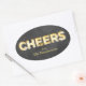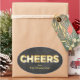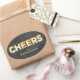 "Cheers" écrit en vintage marquee lumières, sur un arrière - plan de tableau noir décore cet autocollant; en faisant un étiquette parfait pour les sacs cadeaux de vacances, cadeaux ou bouteilles pour amis, famille ou associés d'affaires.